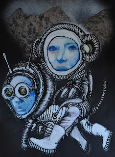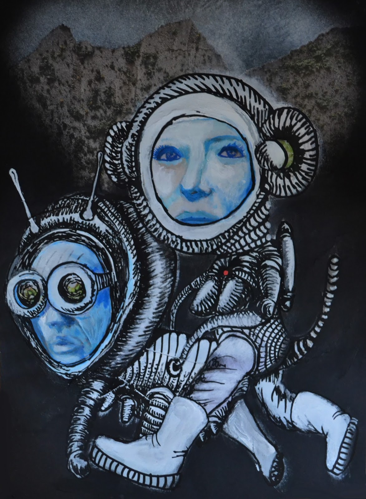 técnica mista acrílico colagem lápis de cor e tinta da China
