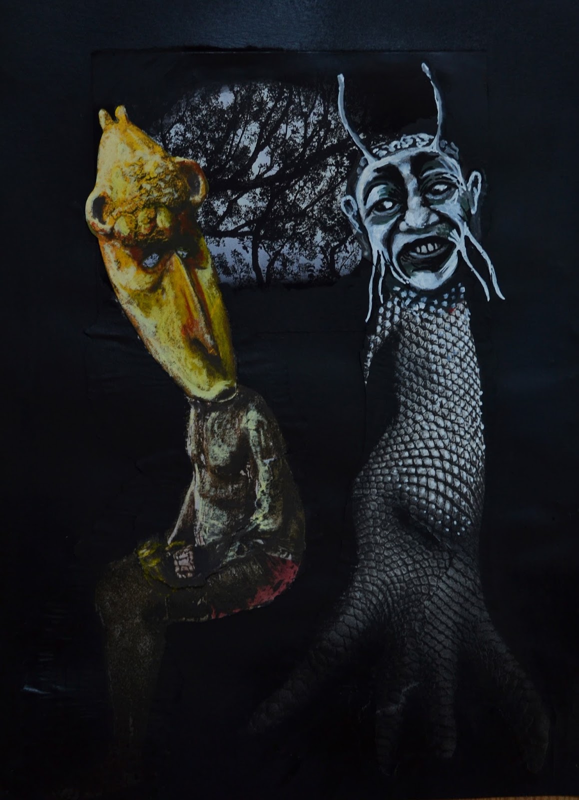 técnica mista acrílico colagem lápis de cor e tinta da China